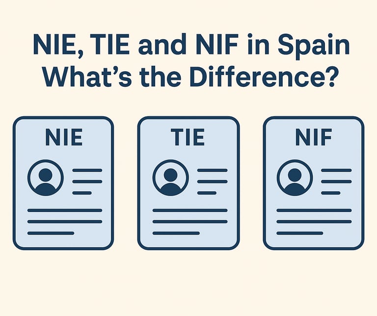 A clear and practical guide explaining the difference between NIE, TIE and NIF in Spain. Learn what each document is used for and which one you need depending on your situation.